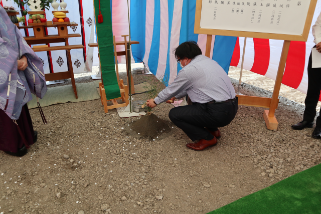 新型コロナウイルスの影響で規模を縮小しての開催となりましたが、全員で工事の安全を祈願致しました。