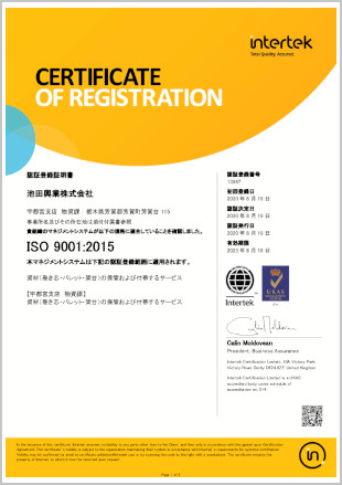 | 認証範囲 | 池田興業株式会社 宇都宮支店 物資課 |